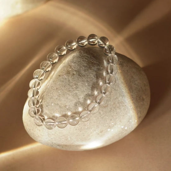 This Clear Quartz bracelet supports aura clearing and amplification through the crystal's powerful healing vibrations and spiritual energy.